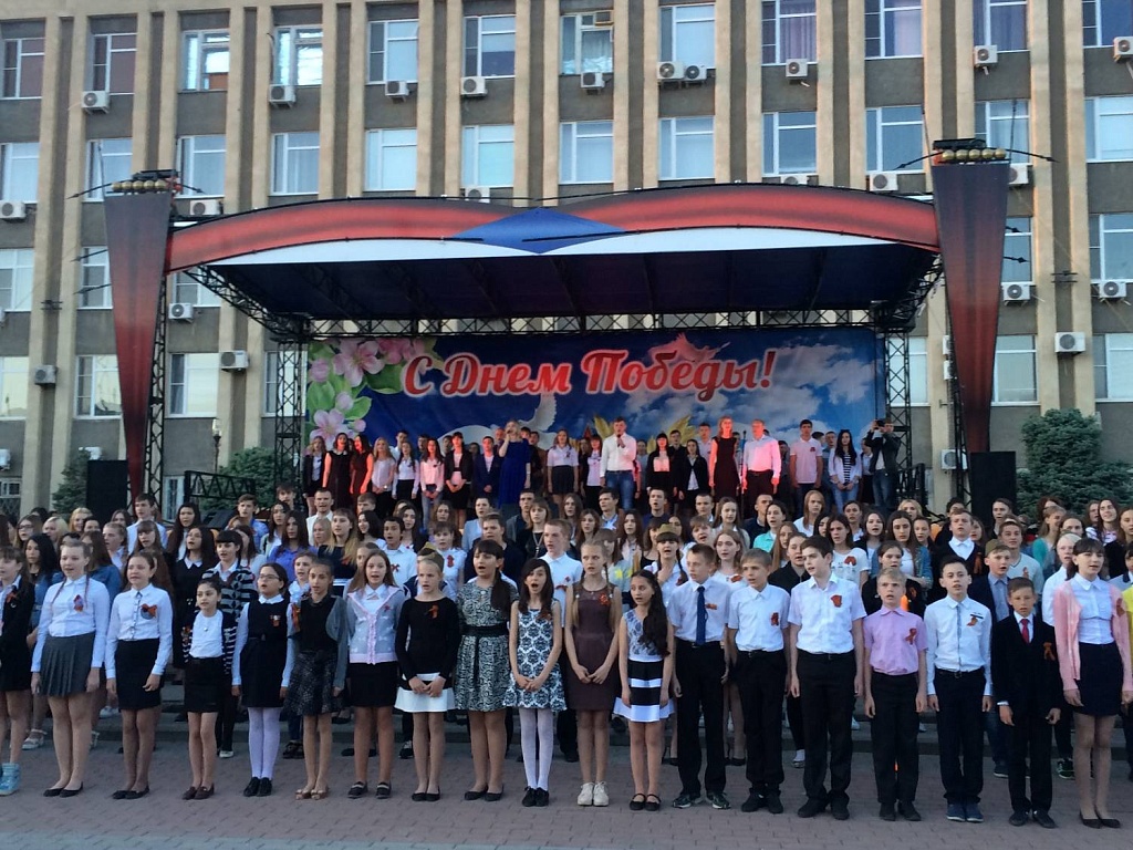 В 19 часов на Центральной площади продолжился праздник выступлением тысячного хора. Обучающиеся колледжа стали участниками сводного хора школьников и студентов города. Был исполнен гимн Российской Федерации и любимые многими песни "Потому что мы пилоты..." и "День Победы".