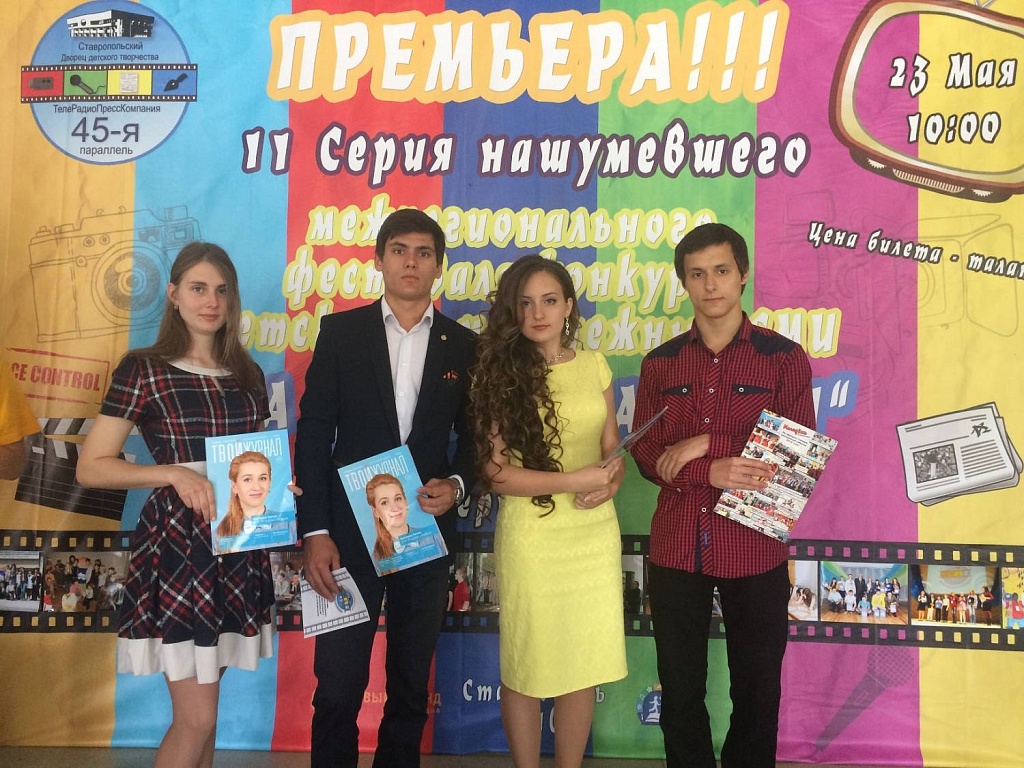 23 мая в Ставрополе прошел очный этап фестиваля-конкурса. Наши студенты представили свои работы в 3-х номинациях: «Лучшая газета», «Лучшая публикация» и «Лучший клип». На конкурсе ребята продемонстрировали свои способности в творческих заданиях: в номинации «Лучшая газета» обучающимися Науменко Евгением и Карнаух Анной была разработана новая газета на тему здорового образа жизни, в номинации «Лучшая публикация» обучающиеся Гоженко Александра и Фокин Вячеслав продемонстрировали свои способности в написании статьи, а в номинации «Лучший клип» ребята приобрели много практического опыта. Ребята остались довольны своей работой и по достоинству были оценены членами жюри. Все получили свидетельство участника и бурю положительных эмоций, а самое главное бесценный опыт в сфере журналистики.