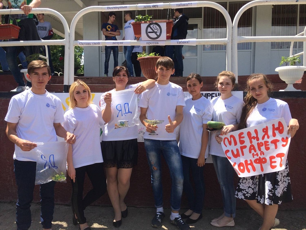 Ежегодно 30 мая в Международный день отказа от табака в колледже проводится акция «Меняем сигарету на конфету!». Организаторами акции стали инициативные ребята из студенческого совета. На большой перемене играла музыка, председатель Барыльникова Анастасия призывала всех отказаться от этой пагубной привычки и поменять сигарету на конфету хотя бы в этот день. В этот же день прошел конкурс плакатов, в котором отличились 115, 116 и 217 группы. Основной целью этих мероприятий является привлечение внимания студентов к собственному здоровью. Ведь эта вредная привычка губит человека изнутри.