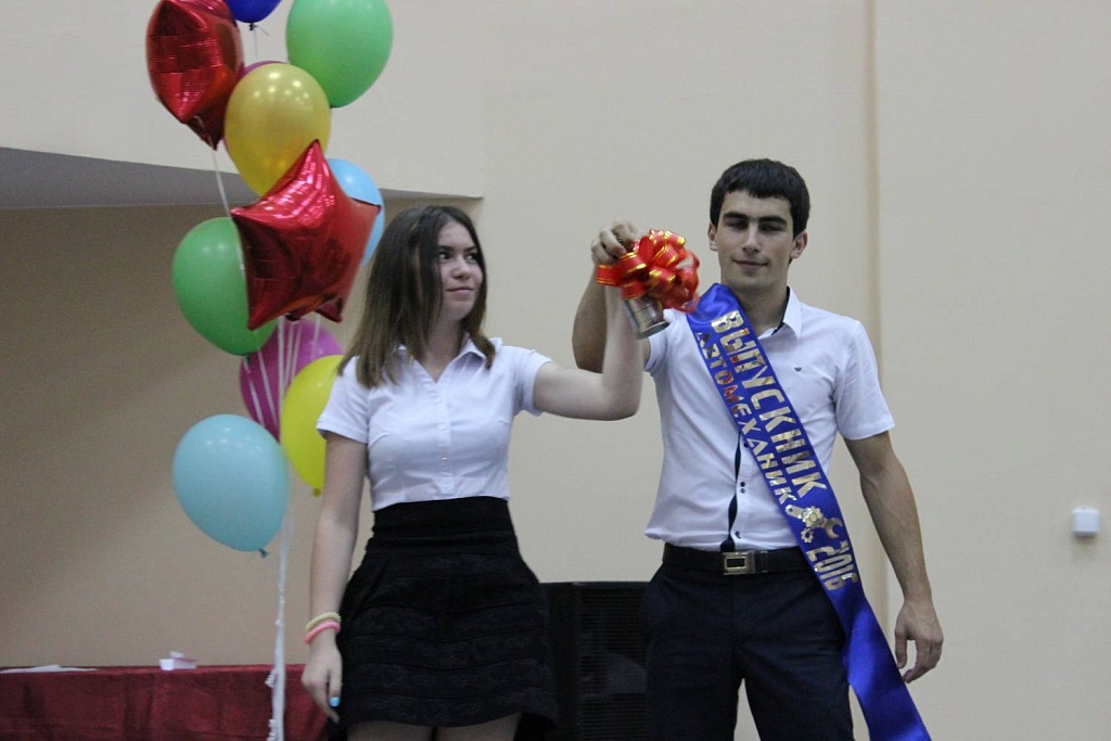 Это самый яркий и торжественный аккорд, которого все ждут на протяжении долгих лет обучения. Виновниками торжества стали выпускники колледжа: 317 группа «Электромонтер по ремонту и обслуживанию электрооборудования»,419 группа «Техническое обслуживание и ремонт автомобильного транспорта», 428 группа «Программирование в компьютерных системах»,324 и 413 группы «Химическая технология органических веществ»,420 группа «Сварочное производство».