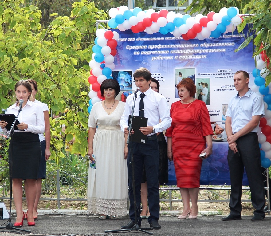 1 сентября 2016 года в колледже традиционно прошла торжественная линейка, посвященная Дню знаний. Открыла праздничную линейку директор колледжа Бабич Марина Владимировна, пожелав студентом удачи в учебе, а первокурсникам успехов на новом для них пути. В торжественной обстановке ведущие представили группы обучающихся и их кураторов и мастеров, а также первокурсников поздравили ребята студенческого самоуправления колледжа и передали им по традиции Ключ Знаний Буденновского политехнического колледжа. В свою очередь первокурсники пообещали стать настоящими прилежными студентами и гордо нести это звание – студент. После торжественной линейки обучающиеся со своими кураторами и мастерами направились на первый в новом учебном году классный час. Начался 2016-2017 учебный год! С праздником всех, с Днем знаний!