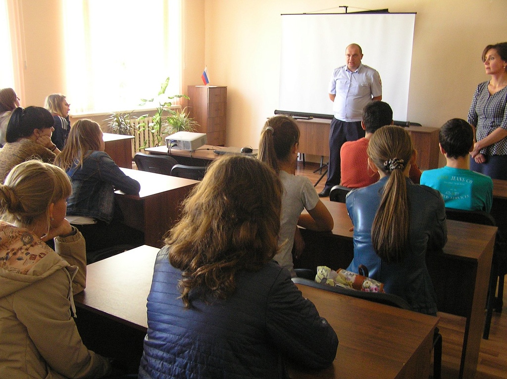4 сентября 2016 г в колледже состоялась встреча студентов с инспектором пропаганды БДД ОГИБДД ОМВД России по Буденновскому району майор полиции Глущенко А.С. Данное мероприятие было организованно в рамках всероссийской акции «Неделя дорожной безопасности», посвященной вопросам обеспечения безопасности детей на дорогах. Главной целью этой встречи было предупреждение нарушений правил дорожного движения и усиление внимания на правила поведения пешеходов и велосипедистов на дороге. Обучающиеся с интересом слушали инспектора и задавали вопросы, встреча получилась интересная и насыщенная.