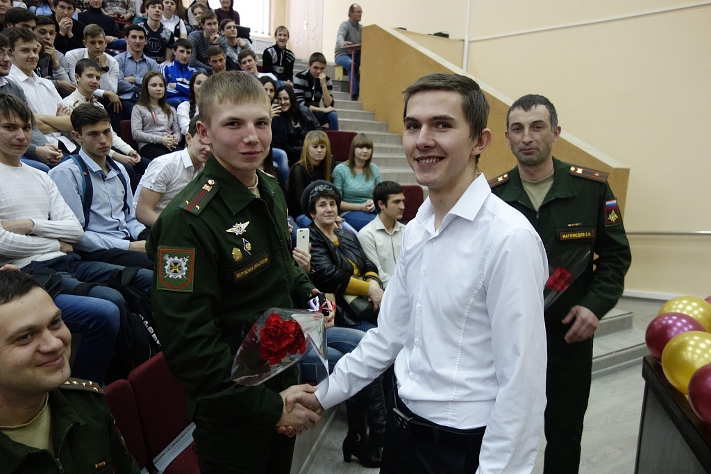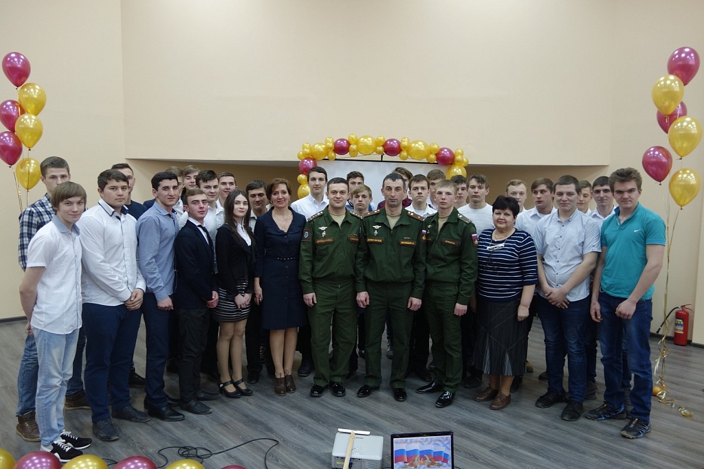 В канун дня защитника Отечества в колледже прошло общеколледжное мероприятие «Героям посвящается…» подготовленное 220 группой, куратор Сычева О.Н. На торжественном мероприятии присутствовали почетные гости колледжа, военнослужащие 78 бригады материально технического обеспечения Южного военного округа. Которые пожелали нашим юношам успехов в учебе и хорошей службы в рядах российских войск.