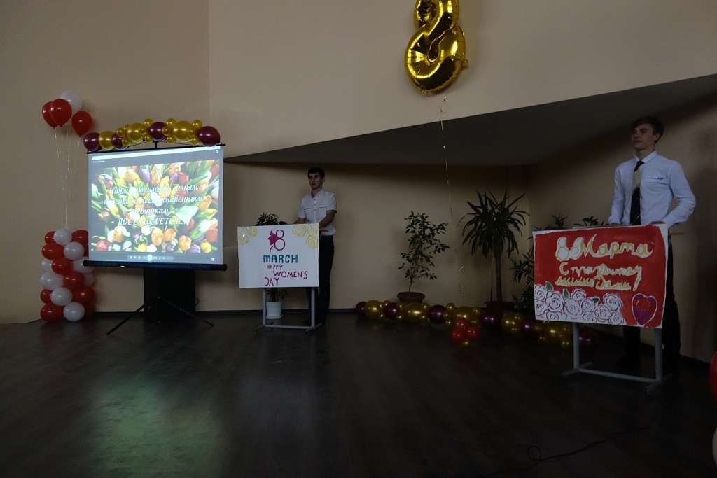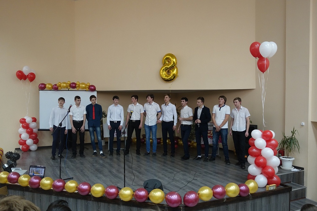 6 марта 2017 года в колледже в преддверии празднования международного женского дня обучающиеся 222 группы под руководством мастера производственного обучения Галушко Е.М. подготовили праздничную музыкальную программу «8 марта - день торжественный». Студенты танцевали, пели, а также разыгрывали шуточные сценки. В зрительном зале не было свободных мест. Все мероприятие проходило в веселой жизнерадостной обстановке, а по окончанию праздничной программы зрители не хотели расходиться и бурными овациями благодарили организаторов мероприятия.