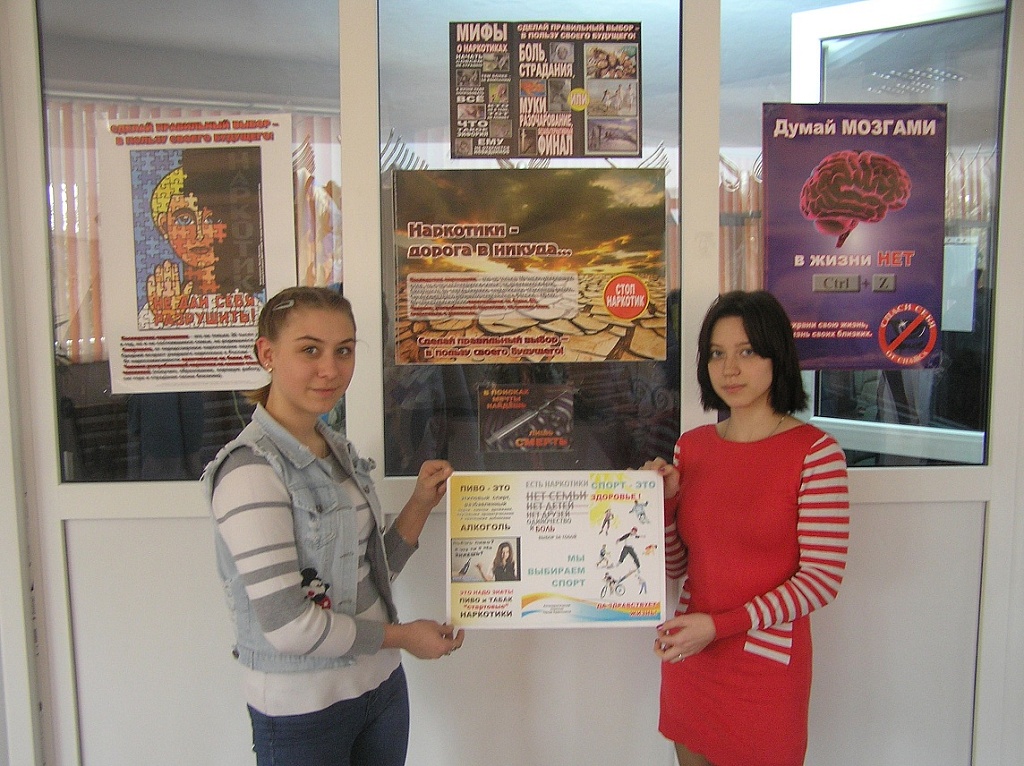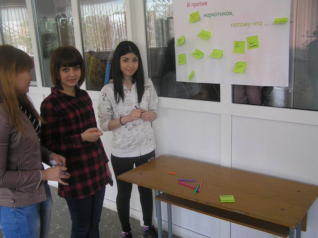 На сайте учреждения был размещен социальный видео ролик о вреде наркотиков. Активистами студенческого совета и волонтерского отряда были распространены буклеты, в которых описывается весь вред наркотиков на организм человека, и содержатся призывы к здоровому образу жизни. Так же в колледже размещены плакаты с надписью «Я против наркотиков, потому что…» на которых участники акции могли высказать свое мнение и отношение к глобальной проблеме – наркомании среди молодежи.