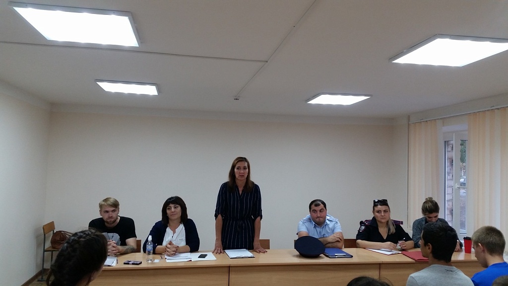 На собрании присутствовали заместитель директора по ВР и СВ Зубаха Светлана Алексеевна, воспитатель Каргалёв Антон Сергеевич, социальный педагог Сологуб Маргарита Алексеевна, сотрудник УУП и ПДН отдела МВД России по Буденновскому району лейтенант полиции Хачатуров Арнольд Рудикович, инспектор ОДН ОУУП и ПДН отдела МВД России по Буденновскому району старший лейтенант полиции Григорян Светлана Робертовна и представители студенческого совета общежития.