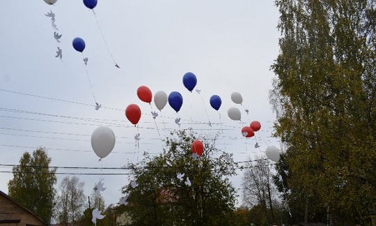 В знак памяти студенты выпустили в небо шары с бумажными голубями под песню И. Дунаевского «Летите голуби, летите».