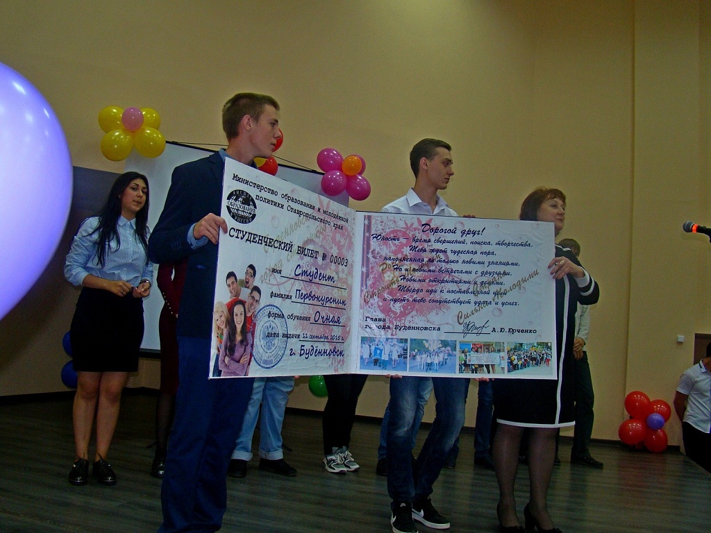 Всем студентам очень понравилось мероприятие, они почувствовали атмосферу добра и радости в стенах нашего учебного заведения. Аплодисменты не смолкали. И в заключение всех первокурсников поздравили своими музыкальными подарками Зайцев Василий, Гоженко Александра и Танярикова Кристина.