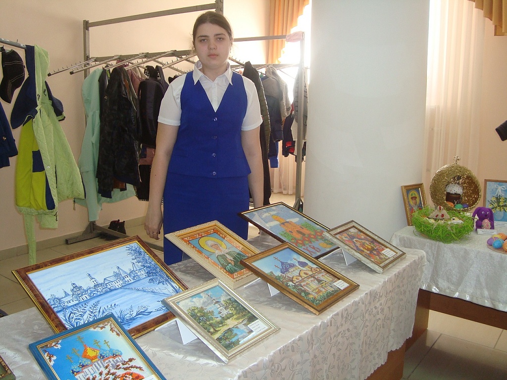 В связи с проведением Пасхального фестиваля Свято-Крестового благочиния Георгиевской епархии РПЦ «Светлое Христово Воскресенье» 10 апреля в ДК города Буденновска состоялась выставка прикладного искусства на тему православной культуры и праздника Пасхи. В выставке приняли участие образовательные учреждения города, от нашего колледжа свои работы предоставила студентка 213 группы Сысоева Татьяна.