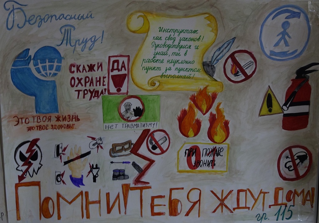 Мероприятия в области охраны труда в колледже не ограничивается обязательными учебными занятиями по охране труда и безопасности жизнедеятельности. Ежегодно в колледже 28 апреля отмечается Всемирный День охраны труда, а так же в октябре месяце проводится день охраны труда. В этом году это мероприятие прошло 30 октября. В рамках праздника охраны труда, прошли семинары, викторины и конкурсы по темам, связанные с охраной труда и безопасностью жизнедеятельности. Кураторами и мастерами групп проводились беседы, классные часы, а так же проводился конкурс стенгазет на тему охраны труда. Лучшие стенгазеты выполнили обучающиеся групп 112,113,115,116,120,315. В музее колледжа проводится выставка ко дню охраны труда.