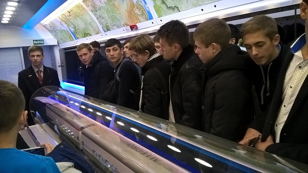 28 ноября обучающиеся 218 группы под руководством мастера п/о Васканова К.В. посетили передвижной выставочно - лекционный комплекс ОАО «РЖД». В состав комплекса входило 9 выставочных вагонов с тематическими экспозициями по истории отечественных железных дорог, реализуемых сейчас инновационных проектов и перспектив развития РЖД. Экскурсия была очень интересной и познавательной. Свои впечатления от посещения выставки группа оставила в книге пожеланий.