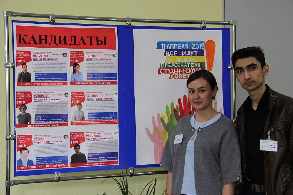 Буденновский политехнический колледж принял участие во Всероссийской кампании по проведению выборов председателя Студенческого совета «Твой выбор». 11 апреля в колледже состоялись выборы председателя Студенческого совета. На этот пост выдвинули свои кандидатуры 6 студентов: Баранов Артем (113гр.), Петросян Елена (215гр.), Гурбина Алена (122гр.), Текеев Мурат (213гр.), Истомин Виктор (228гр.), Белобров Данил (213гр.).