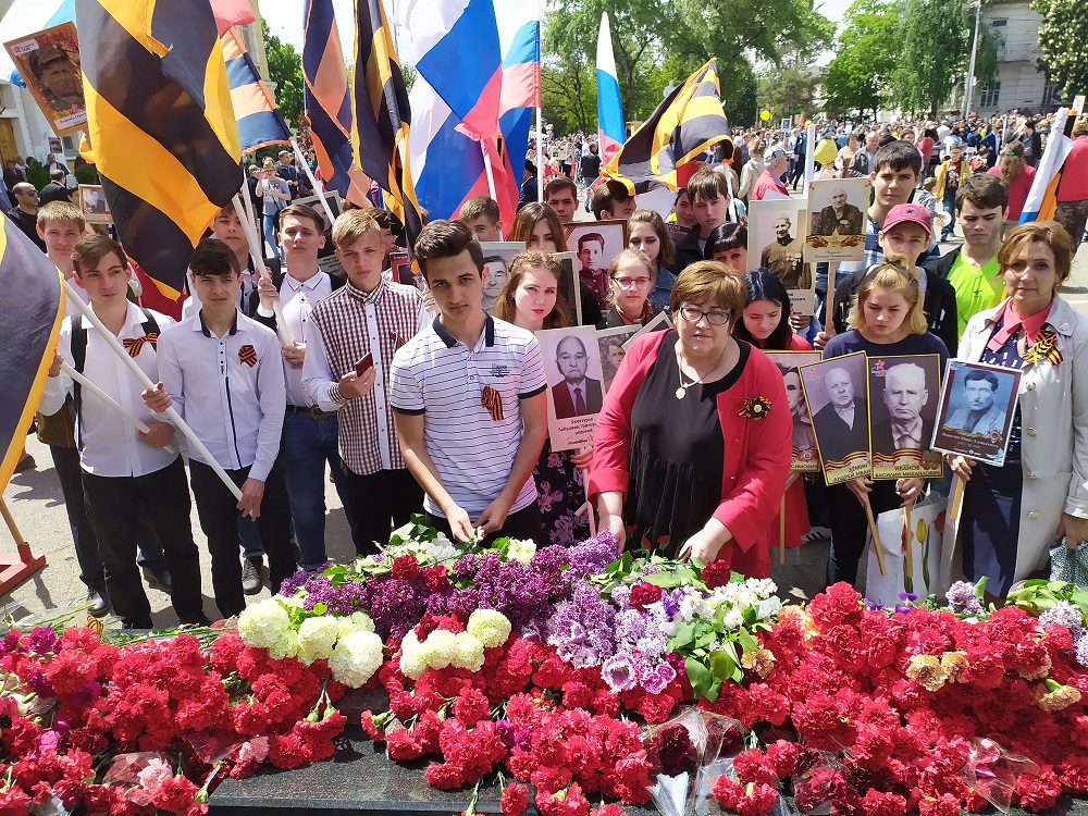 Ведь практически в каждой российской семье был свой фронтовик – отец, дед, прадед. И те, кому дорога память о родном человеке, участвовавшем в Великой Отечественной войне, отыскали информацию о родственнике - фронтовике, изготовили транспарант с фотографией ветерана и пришли с ним на парад. В рядах бессмертного полка бок – о - бок стояли взрослые и дети, которые хранят память о подвиге своего солдата. В колонне полка прошли те, чьи деды пали на поле боя, освобождая от фашистских захватчиков города в России, Украине, Белоруссии и всей Европы. Многие из них пропали без вести или погибли в первые годы войны в кровопролитных битвах за Сталинград, Курск, Ленинград, Москву. Это именно они шли в бой со словами: «Ни шагу назад!» Другие пролили кровь в Берлине, так и не дождавшись вести о Победе. Есть и те, кто вернулся домой, но до нынешнего дня Победы не дожил.