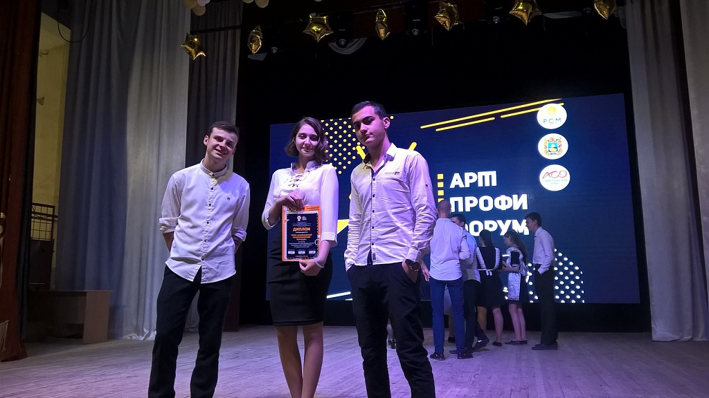 16 мая в г. Ставрополь состоялся региональный этап программы для обучающихся общеобразовательных организаций и студентов профессиональных образовательных организаций «Арт-Профи Форум». В конкурсной программе приняли участие наши студенты: Уваров Сергей (120гр.), Агаджанян Гариб (128гр.), Дубына Ариана (113гр.), в их исполнении прозвучала авторская песня о колледже. Так же наши студенты приняли участие в номинации « Видеоролик о колледже».