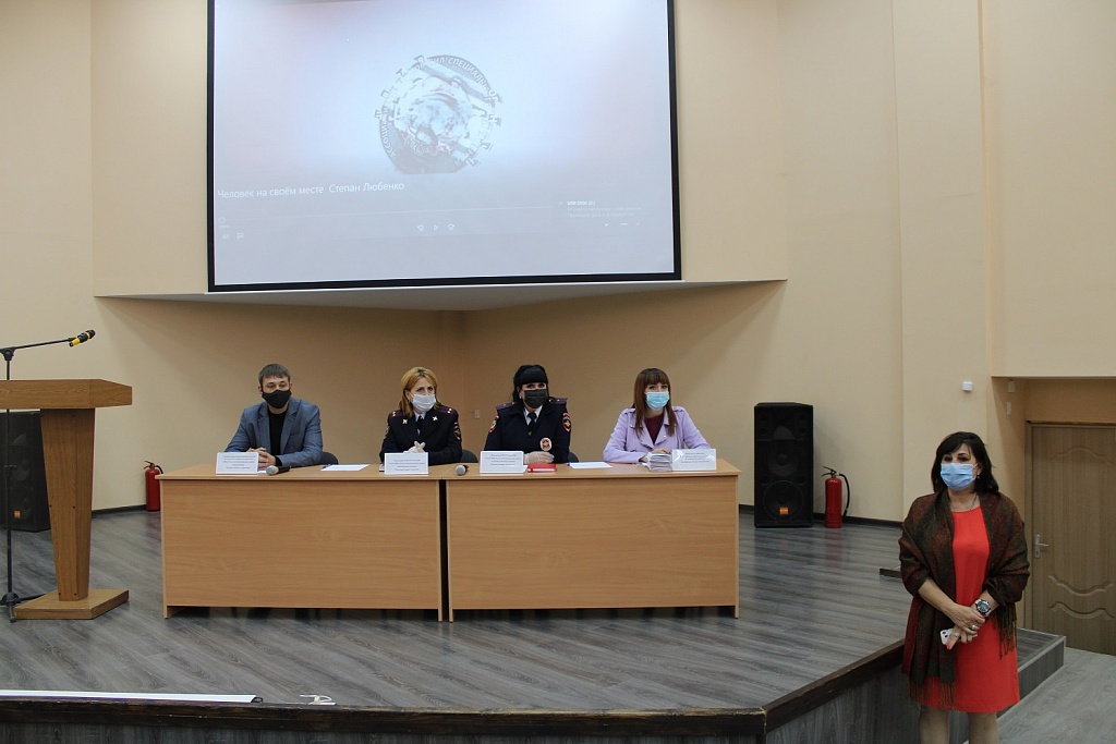 27 октября 2020 г. состоялась встреча студентов первого и второго курсов «Профилактика социальных рисков и правонарушений среди обучающихся ГБПОУ БПК» с представителями учреждений системы профилактики: начальником ОДН ОУУП и ПДН отдела МВД России по Буденновскому району подполковником полиции Пилюгиной Л. С.,, инспектором ОДН ОУУП и ПДН отдела МВД России по Буденновскому району младшим лейтенантом полиции Ивановой М. Д., старшим оперуполномоченным отделения по контролю за оборотом наркотиков ОМВД России по Буденновскому району майором полиции Рындиным Максимом Альбертовичем, заместителем директора МБУ «Центр по работе с молодежью Буденновского района» Плотниковой Т. М. и директором колледжа Бабич М. В.