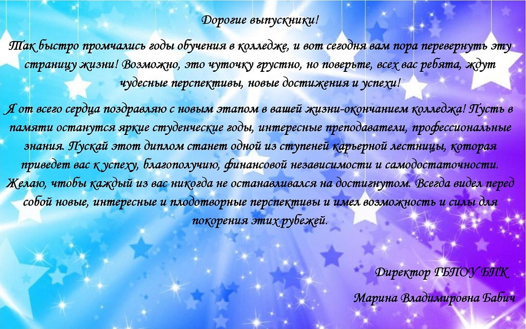 Поздравление директора ГБПОУ БПК выпускникам