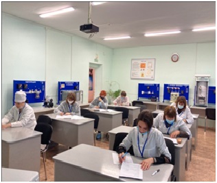 по компетенции «Лабораторный химический анализ». Практические занятия проходили в лаборатории колледжа с применением нормативной документации для прохождения профессионального курса. После изучения данной программы, слушателям присваивается квалификация «Лаборант химического анализа- 4 разряда.