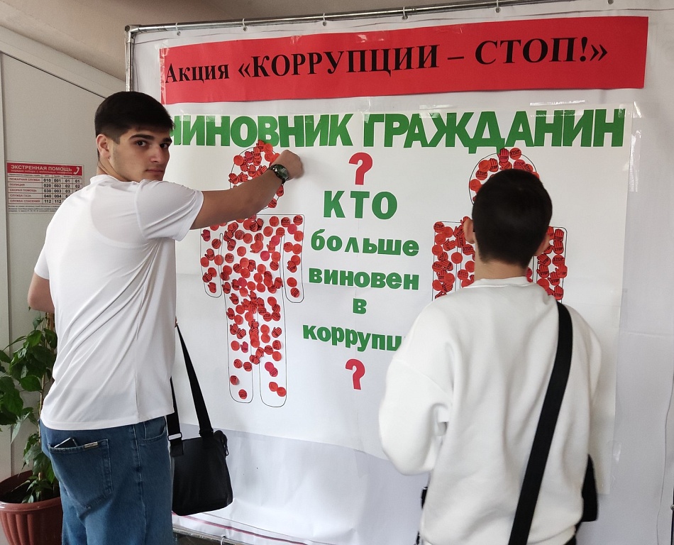 9 декабря - Международный день борьбы с коррупции в колледже в этот день прошла акция «Коррупции - стоп». В рамках акции студенты колледжа наклеивали стикеры «Стоп, коррупция!» на баннер, выбирая «Кто же виноват больше? Чиновник или Гражданин». Также обучающиеся колледжа приняли участие в конкурсе стенгазет и видеороликов «Мы против коррупции!», а лучшие работы по мнению жюри разделили первое, второе и третье места.