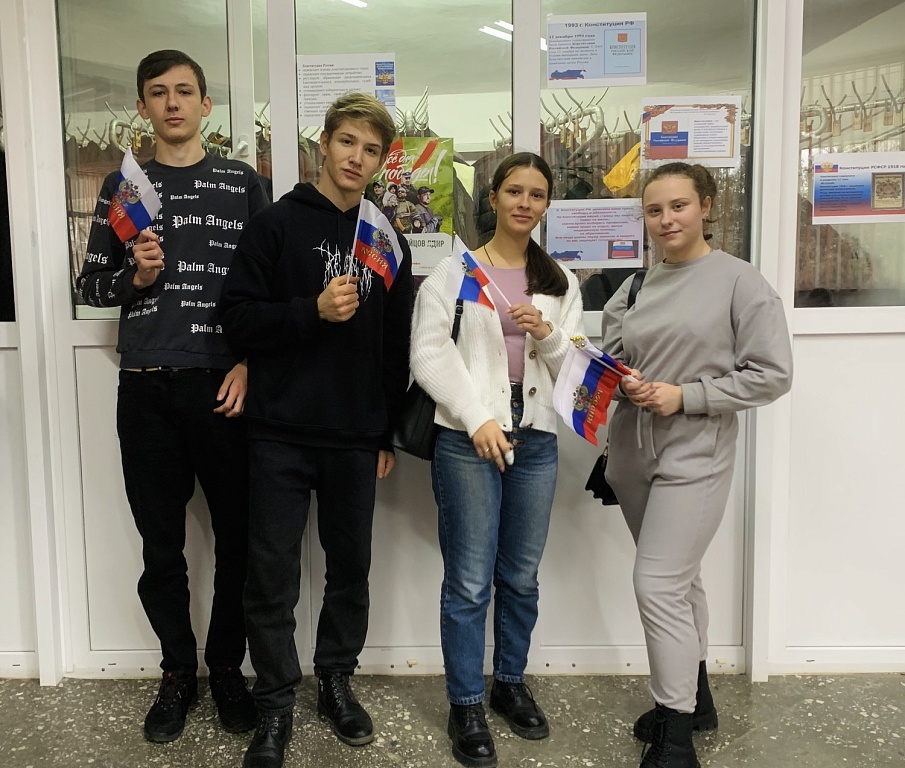 Наши студенты в рамках акции «Наша Конституция — наш закон» брали интервью у студентов и преподавателей, задавая им вопросы о конституции. Свои знания смогли проверить все желающие. По окончанию всем участникам акции выдавались флажки Российской Федерации.