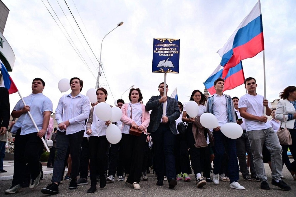 На центральной площади Буденновска прошла торжественная церемония посвящения первокурсников в студенты.