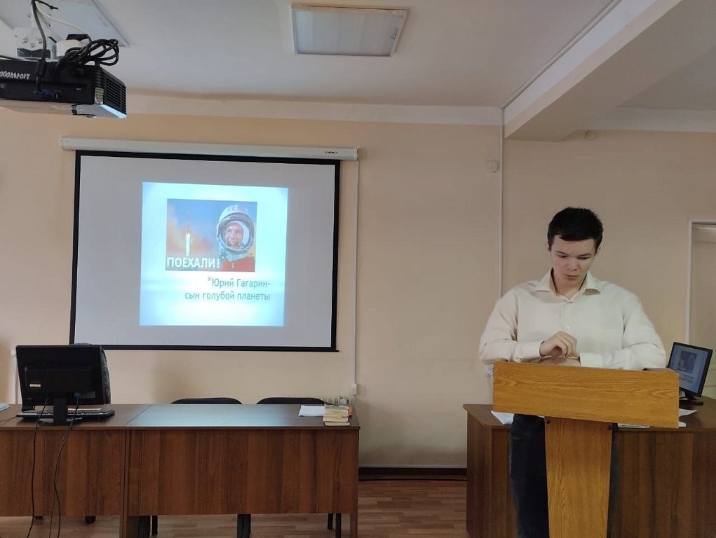 Левинцов Артём из 217 группы подготовил презентацию о Ю. Гагарине, человеке-легенде, который первым покорил космическое пространство. Полёт, который продолжался всего 108 минут открыл возможности для исследований и освоения космоса людям всего земного шара.