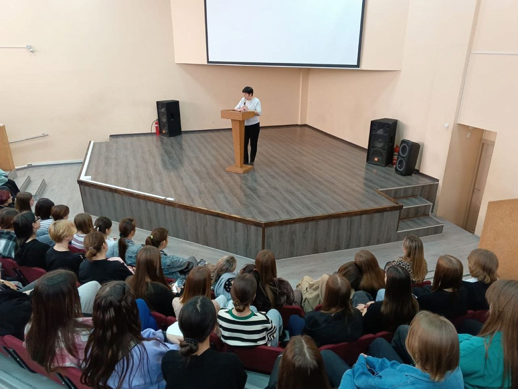 〽️ Она провела со студентами лекцию «Сохранение репродуктивного здоровья детей», в рамках объявленного Президентом РФ «Года семьи».