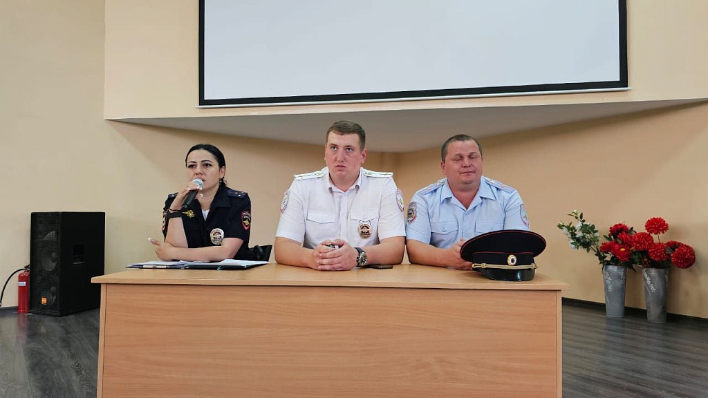 В преддверие летних каникул в колледже прошла встреча студентов 1-2 курсов с представителями правоохранительных органов на тему: "Безопасное лето! ", с инспектором ОДН ОУУП и ПНД ОМВД " Будённовский" старшим лейтенантом Ханагаевой Ж. А., госинспектором ГИБДД старшим лейтенантом полиции Бибиковым С. А., старшим оперуполномоченным ОКОН ОМВД России майором полиции Мартыновым А. В.