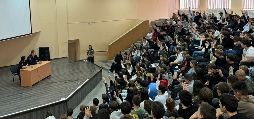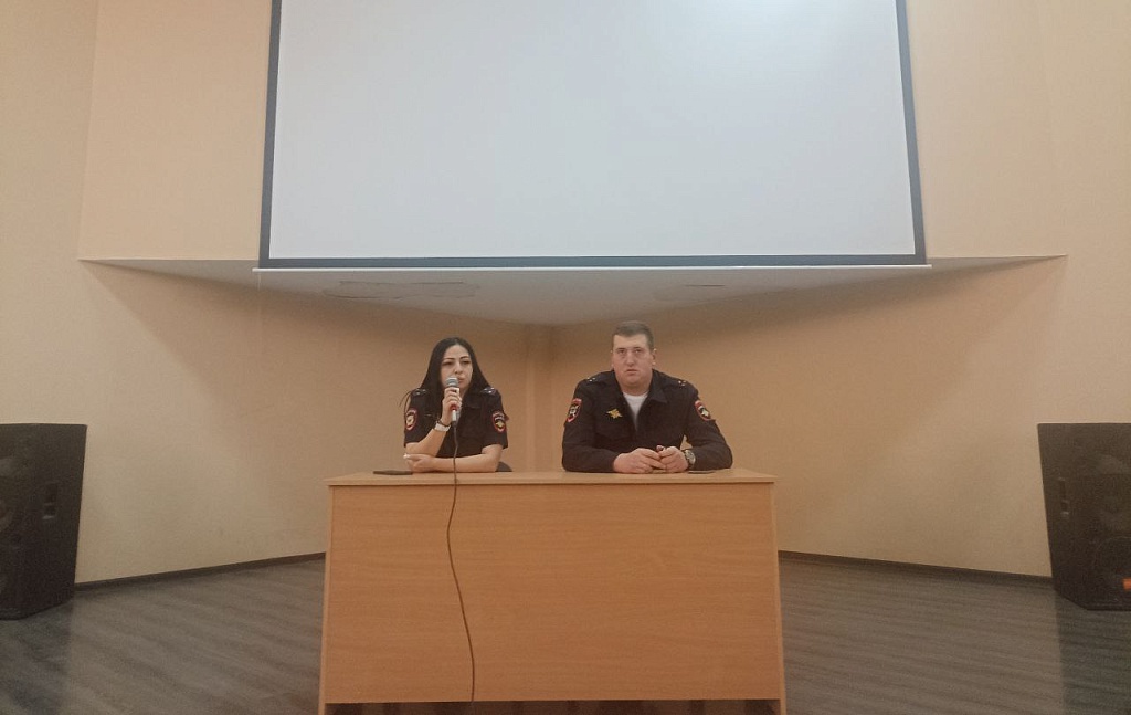 29 октября в колледже состоялась встреча студентов с представителями правоохранительных органов на тему: "Уголовная и административная ответственность несовершеннолетних", с инспектором ОДН ОУУП и ПНД ОМВД России Будённовский" старшим лейтенантом Ханагаевой Ж. А., Госинспектором БДД старшим лейтенантом полиции Бибиковым С. А.