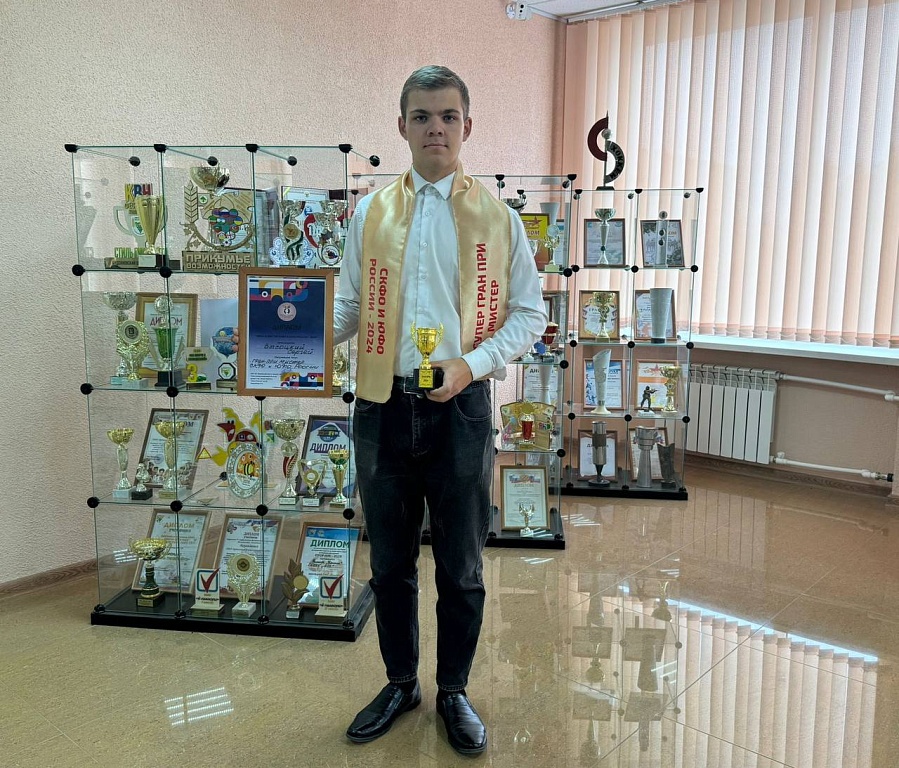 Поздравляем Высоцкого Сергея, студента 222 группы, получившего титул «ГРАН-ПРИ МИСТЕР И СКФО И ЮФО РОССИИ». Этот престижный конкурс стал значимым событием для всех участников и зрителей, проходя в городе Невинномысск, который в этом году стал культурной ареной для талантливых молодых людей.
