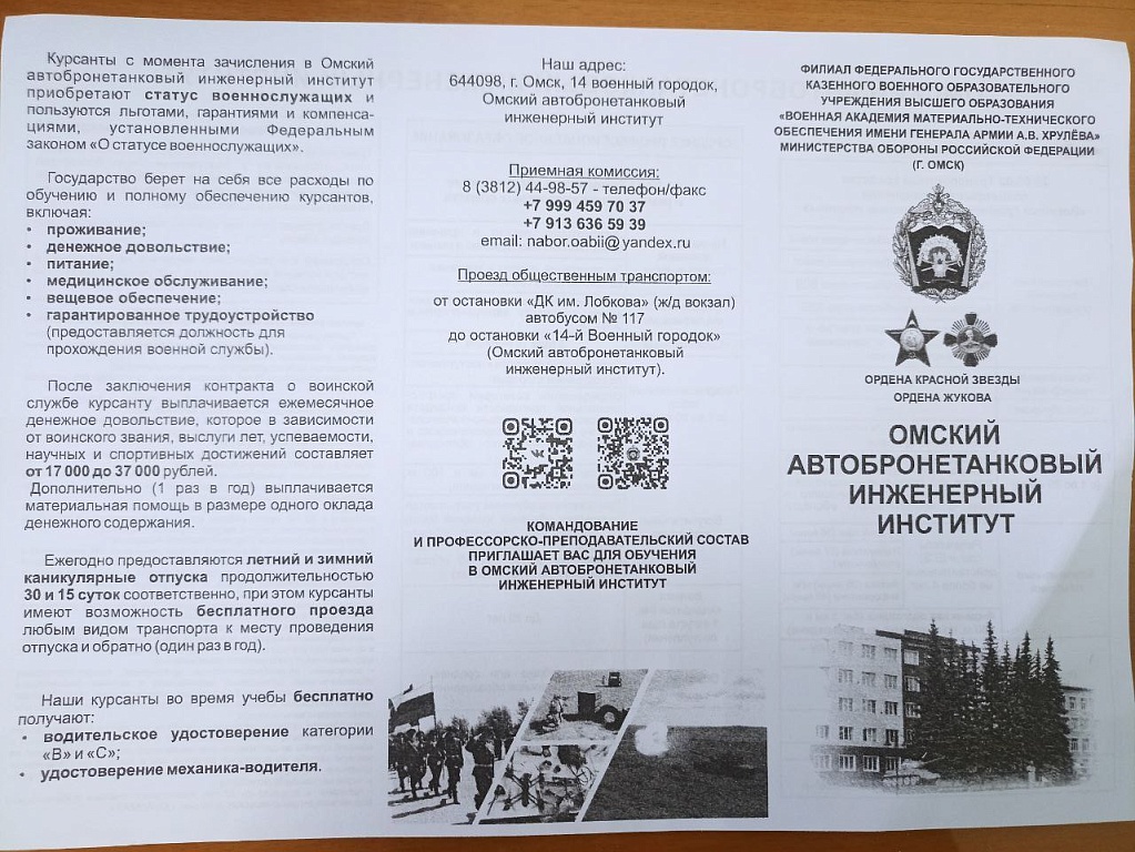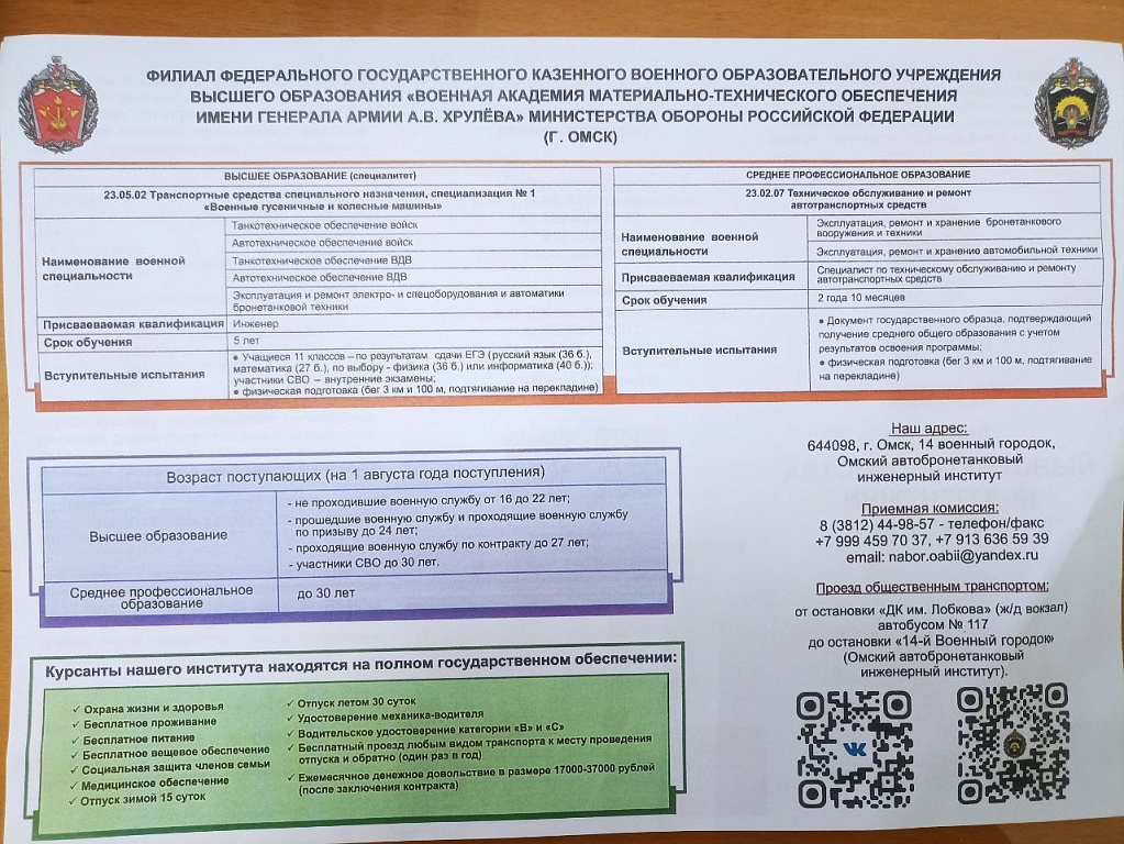 Омский автобронетанковый инженерный институт проводит набор курсантов для обучения по программе высшего образования по военным специальностям: "Танкотехническое обеспечение войск", " Автотехническое обеспечение войск", "Автотехническое обеспечение ВДВ".