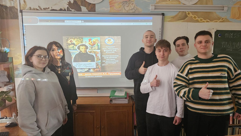 10 февраля, в День памяти Александра Сергеевича Пушкина, в нашем колледже прошел литературный час, посвященный жизни и творчеству великого русского поэта. Преподаватель литературы Л.В. Зюзина провела увлекательную беседу о Пушкине, его судьбе и вкладе в русскую культуру. Студенты активно участвовали в обсуждении, делились своими впечатлениями от произведений поэта, декламировали любимые отрывки из его стихов и прозы. Мероприятие позволило студентам еще раз прикоснуться к богатому наследию Пушкина и почтить память гениального писателя.