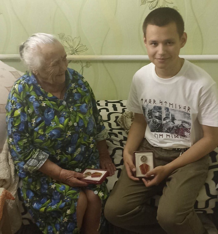 Студент группы 122 Мстислав Заварзин принял участие в акции "Успей сказать спасибо", посетив 96-летнюю Надежду Григорьевну Лободу, родившуюся 29 января 1929 года. Надежда Григорьевна — обладательница медалей "Ребенок войны", "Ветеран труда", "Ветеран тыла" и "80 лет Победы".