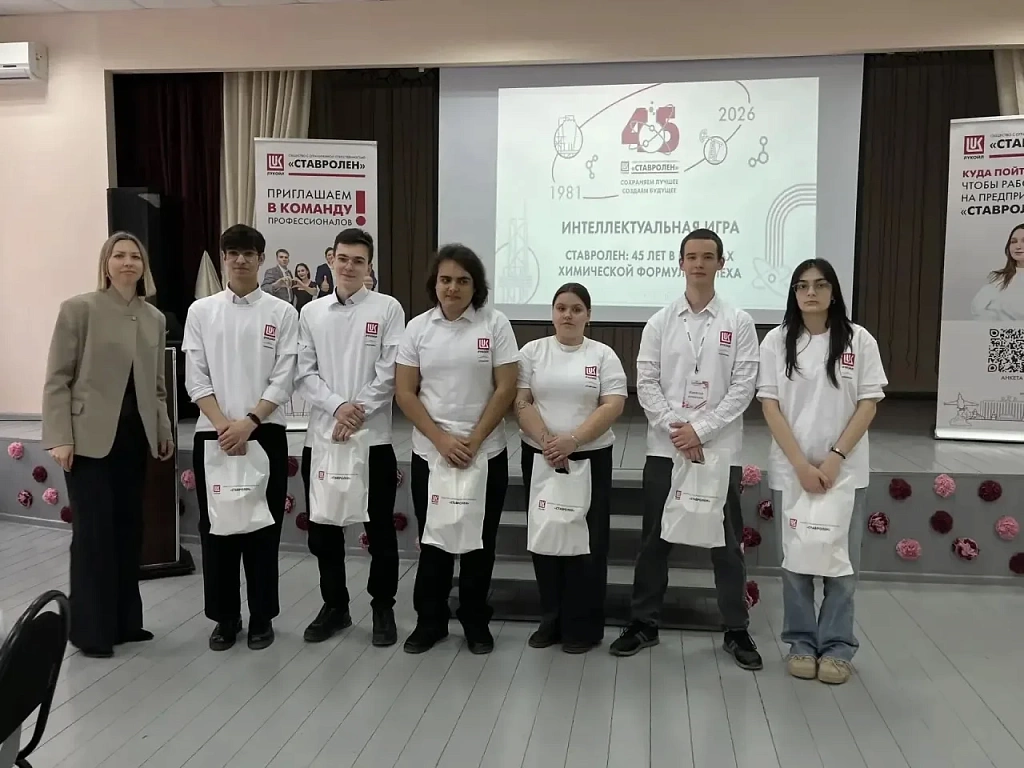 25 марта 2026 года на площадке лицея № 8г.Буденновска состоялась интеллектуальная игра на тему «Ставролен:45 лет в поисках химической формулы успеха», в которой участвовали 3 команды: Буденновский политехнический колледж, обучающиеся лицея 8 и студенты Филиала Ставропольского педагогического института по 6 человек в каждой.