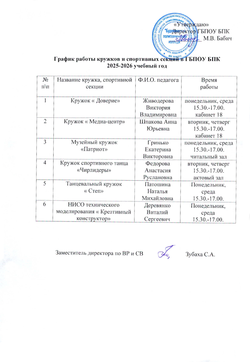 Организация внеурочной деятельности в ГБПОУ БПК 2025-2026 уч. год