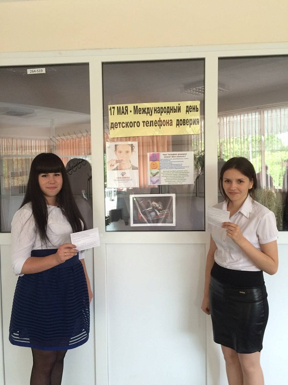16 мая в колледже прошла линейка, посвященная Международному дню детского телефона доверия. В этот день по всему миру проводятся информационные мероприятия с целью привлечь внимание широкой общественности к необходимости усиления мер по защите детей в трудной жизненной ситуации и помощи им. На мероприятии студенты узнали Единый общероссийский номер детского телефона доверия, в каких ситуациях они могут обратиться за помощью, а также историю появления телефона доверия. В заключение линейки торжественно поздравили наших победителей – спортсменов с их успехами и активных творческих ребят с участием в краевых конкурсах. А после линейки всем желающим раздали листовки с дополнительной информацией о номере доверия.