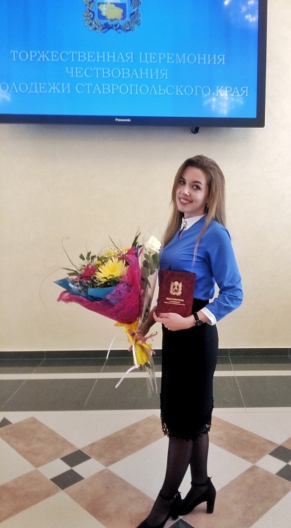 11 ноября в г. Ставрополе состоялась торжественная церемония вручения удостоверений стипендиатов Губернатора Ставропольского края. В церемонии награждения приняла участие студентка нашего колледжа Филиппова Анастасия. Анастасия принимает активное участие в жизни группы и колледжа: выступает на научно - практических конференциях, участвует в разработке мультимедийных проектов, участвует в городских и краевых конкурсах: в Краевом конкурсе «Новый взгляд»; в 1 этапе Всероссийской олимпиады профессионального мастерства по специальности «Программирование в компьютерных системах»; награждена дипломами за участие в студенческих конференциях мультимедийных проектов «Глобальные проблемы человечества», «Уроки войны и современные угрозы миру», была стипендиатом Правительства Российской Федерации 2014-2015. Анастасия участвует в спортивных мероприятиях колледжа, увлекается видеомонтажом, компьютерной графикой и по окончании колледжа желает продолжить дальнейшее обучение в ВУЗе.