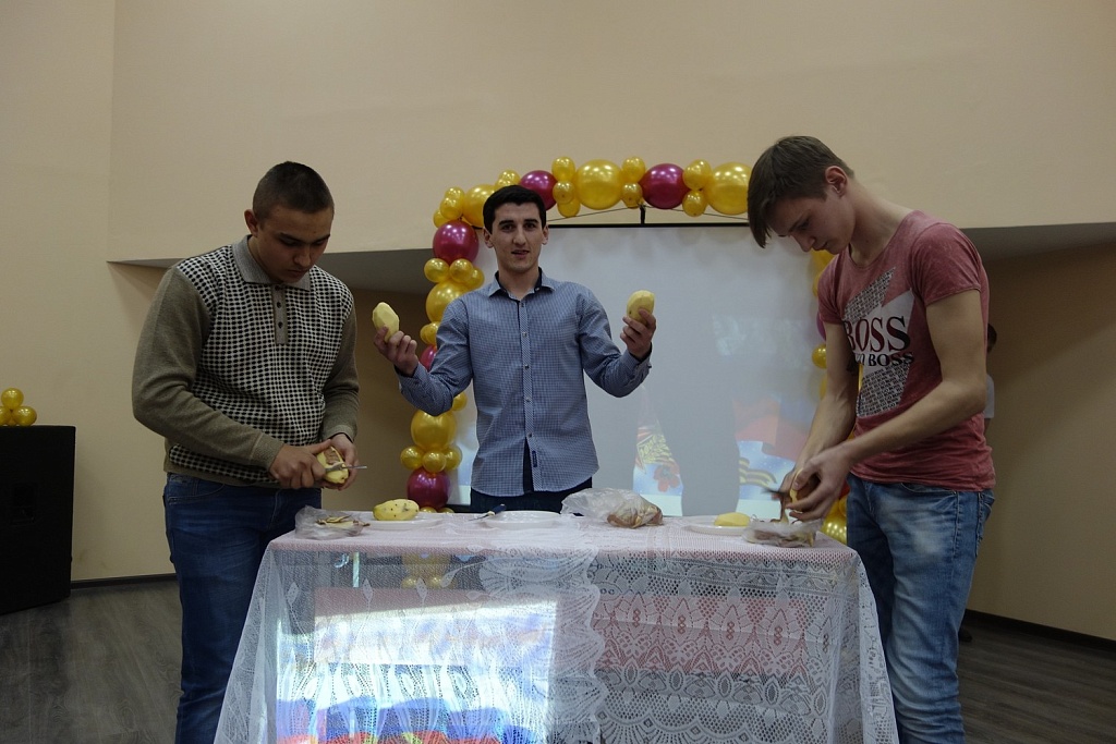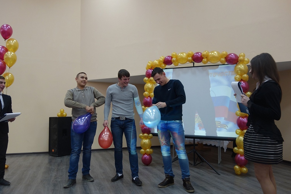 Настроение парням и гостям колледжа поднимали музыкальные номера, представленные Зайцевым Василием, Гоженко Александрой и Цатуровой Татьяной, и шуточные конкурсы. Праздник прошел в веселой и легкой атмосфере. Все зарядились морем позитива и задора.
