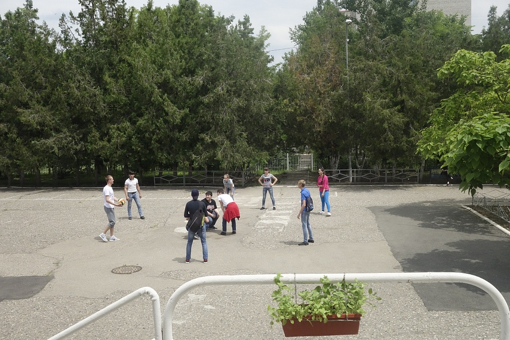 А в это время на плацу играли в подвижные игры: «Волейбол», «Картошка», «Выбивного».