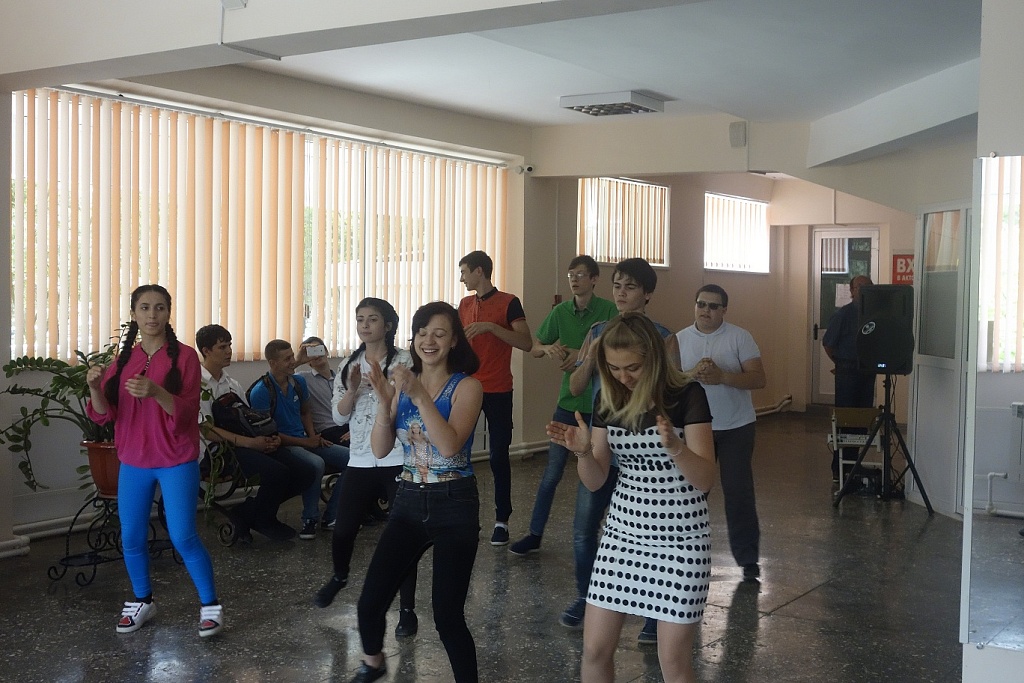 В холле играла музыка и проходил флешмоб, который плавно перешел в танцы всех желающих.