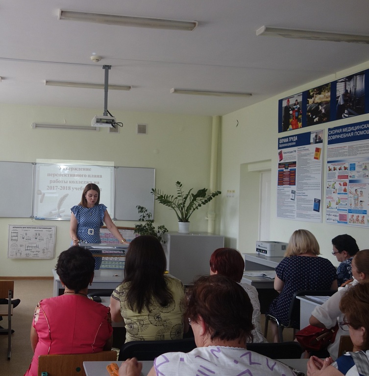 Открыла работу педагогического совета директор Бабич Марина Владимировна, которая поздравила весь педагогический состав с началом учебного года. Далее Марина Владимировна проанализировала работу прошедшего 2016-2017 учебного года. Была отмечена планомерная работа по подготовке колледжа к новому учебному году: подготовлен лекционный класс, отремонтирован музей.