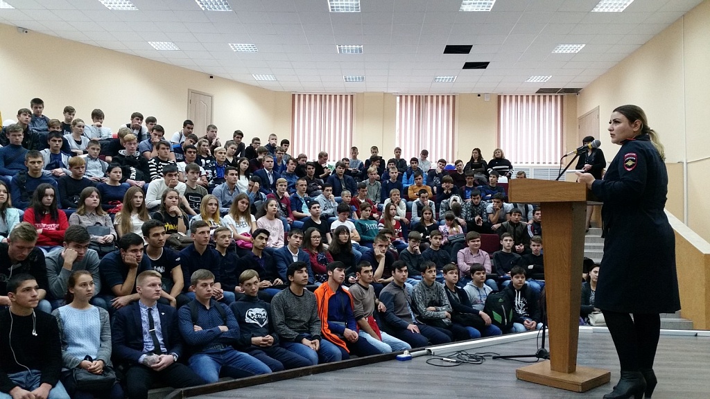 Ежегодно с целью профилактики правонарушений среди учащейся молодежи в колледже проводятся встречи студентов с сотрудниками правоохранительных органов г. Буденновска и Буденновского района. 26 октября 2017 г. для всех первокурсников инспектор ОДН ОУУП и ПДН отдела МВД России по Буденновскому району старший лейтенант полиции Григорян С.Р. провела разъяснительную работу по теме «Уголовная и административная ответственность несовершеннолетних». Обучающиеся узнали, с какого возраста наступает уголовная и административная ответственность, какие наказания применяются за совершение правонарушений и преступлений. Беседа основывалась на конкретных примерах и фактах из профессиональной деятельности инспектора. Были подняты вопросы безопасности жизни и здоровья несовершеннолетних, их ответственности за сохранность личных вещей.