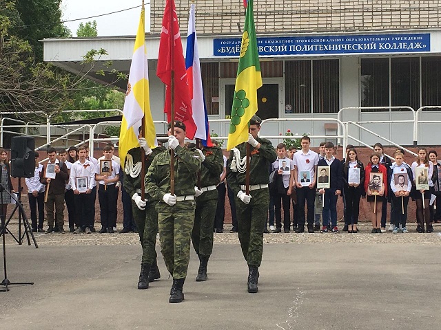 8 мая в колледже прошло торжественное мероприятие, посвященное празднованию 74-й годовщины Победы в Великой Отечественной войне, которое подготовили студенты 122 группы (куратор Балан А.О.). Со словами поздравления к студентам и педагогам обратилась директор колледжа Бабич Марина Владимировна. Во время проведения мероприятия студенты танцевальной группы «Ритм» (руководитель Барыльникова А.Р.) и участники флеш-моба «Вальс Победы» выступили с театрализованной композицией