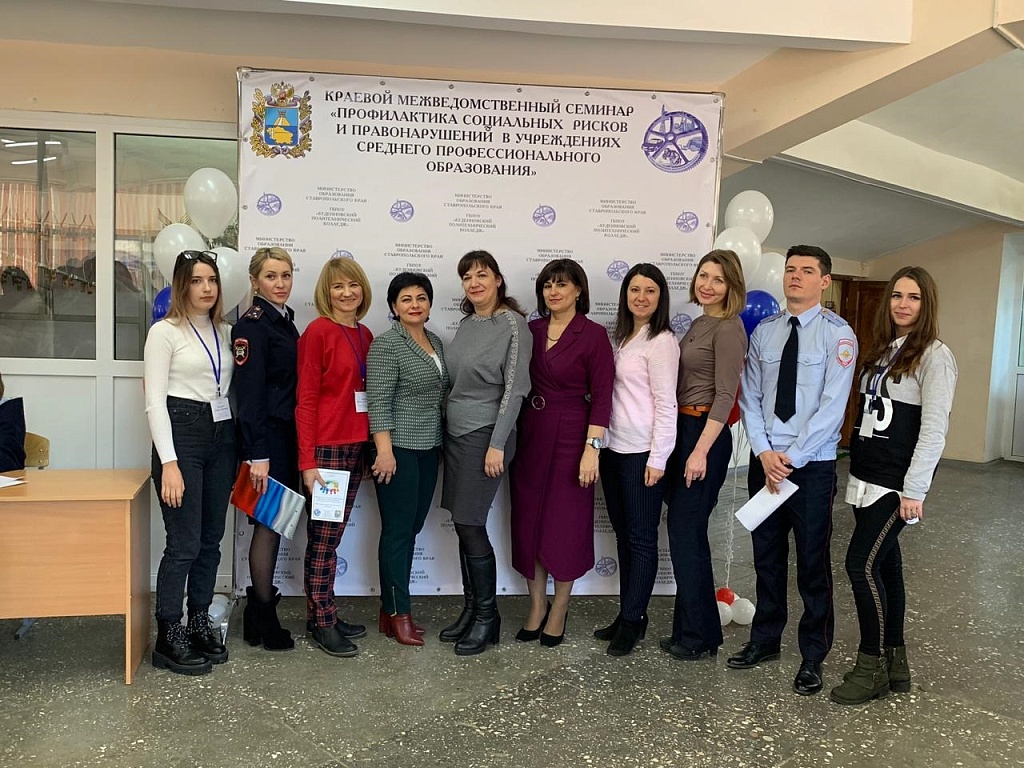 22 ноября в ГБПОУ « Буденновский политехнический колледж» состоялся краевой межведомственный семинар «Профилактика социальных рисков и правонарушений в учреждениях среднего профессионального образования». Участниками семинара стали представители министерства образования Ставропольского края, органы местного самоуправления Буденновского района, заместители руководителей по воспитательной работе и социальным вопросам, психологи, социальные педагоги организаций профессионального образования , специалисты Центра психолого-педагогической помощи, представители правоохранительных органов и учреждений реализующих молодежную политику.