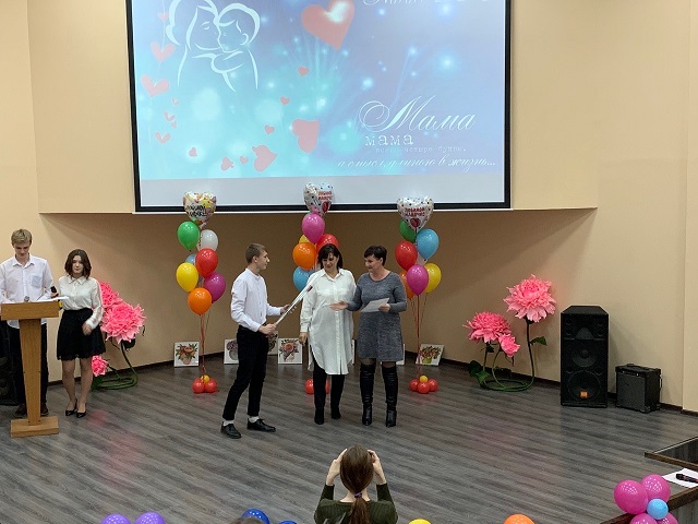 28 ноября в колледже прошел праздник, посвященный Дню матери. Студентами групп 215 и 220 (мастер п\о Галушко Е.М.) был организован праздничный концерт. Со словами поздравления и вручения благодарственных писем мамам обучающихся выступила директор колледжа Бабич Марина Владимировна. Праздничная программа была насыщена музыкальными поздравлениями от Кондраковой Ольги, Алексеровой Наиды, Макаровой Александры, Тютюника Евгения, Пушкиной Вероники, Дубына Арианы. Студенты групп 215, 222 и 220 читали много трогательных и очень душевных стихов для мам, были подготовлены видеоролики, которые не оставили равнодушным никого из присутствующих в зале.