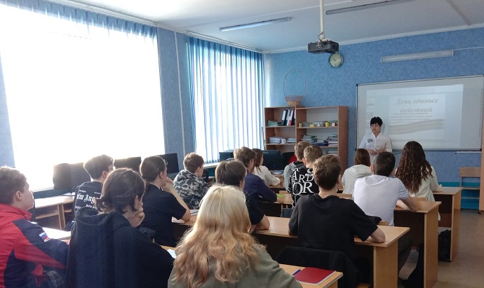 Ежегодно 19 апреля во всех образовательных организациях России проводится День единых действий в память о геноциде советского народа нацистами и их пособниками в годы Великой Отечественной войны 1941 – 1945 гг. В этот день, 19 апреля 1943 года, был издан Указ Президиума Верховного Совета СССР №39 "О мерах наказания для немецко-фашистских злодеев, виновных в убийствах и истязаниях советского гражданского населения и пленных красноармейцев, для шпионов, изменников родины из числа советских граждан и для их пособников". Этот указ стал правовым основанием большой работы по установлению и расследованию преступлений нацистов против советского народа, которая велась с ноября 1942 года Чрезвычайной государственной комиссией.