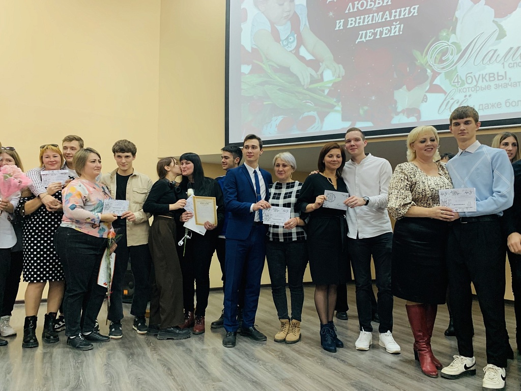 В нашем колледже студенты долго готовились к этому замечательному дню, учили песни и стихи, готовили сюрпризы и цветы, сочиняли пожелания и поздравления, чтобы вместе поздравить всех мам с этим знаменательным днём. 24 ноября праздник начался в очень теплой и дружеской атмосфере, ведь всегда приятно, когда можно создать друг для друга хорошее настроение и провести время весело и по-домашнему. В начале праздника со словами поздравления выступила директор колледжа Бабич Марина Владимировна. Куратор и студенты 228 группы подготовили мероприятие. В рамках мероприятия была организована и проведена выставка работ декоративно-прикладного творчества «Мой мир».В конце мероприятия студенты вручили своим мамам письма, со словами любви и нежности.