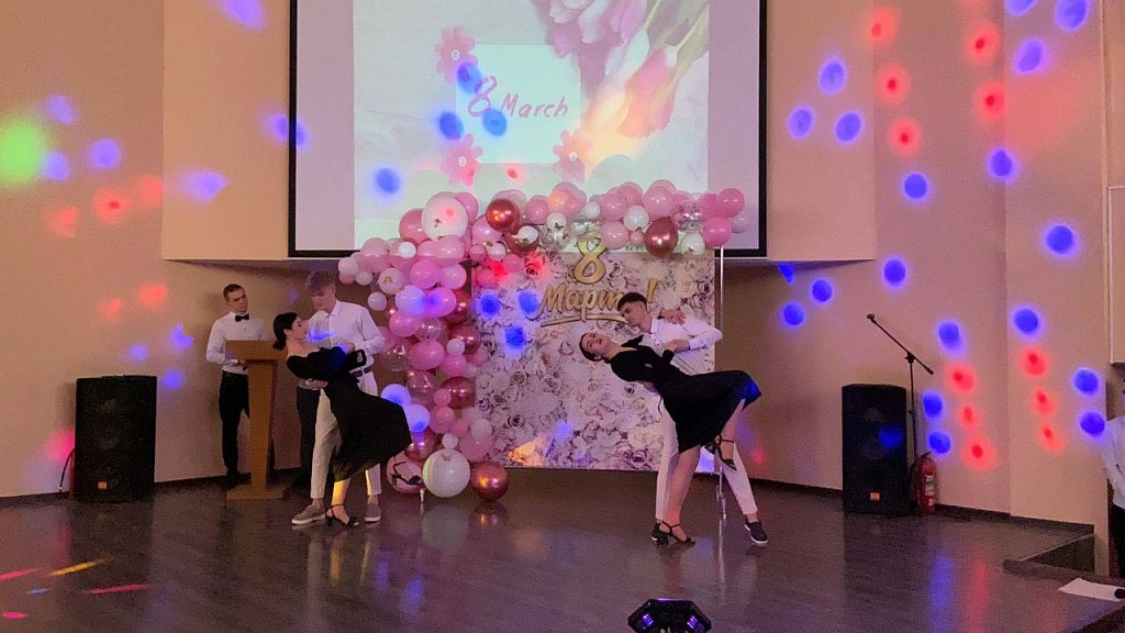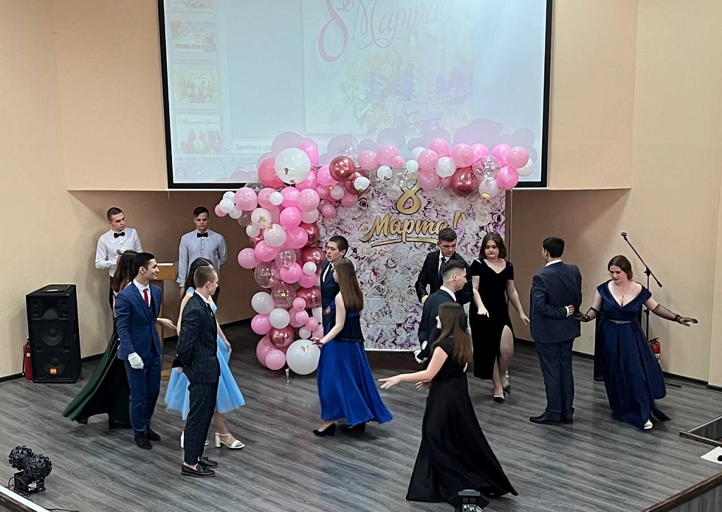 Поздравления в этот день сыпались для всех дам нашего колледжа. Со сцены в этот день звучали песни, ребята готовили танцы, учили стихотворения и показывали сценки.