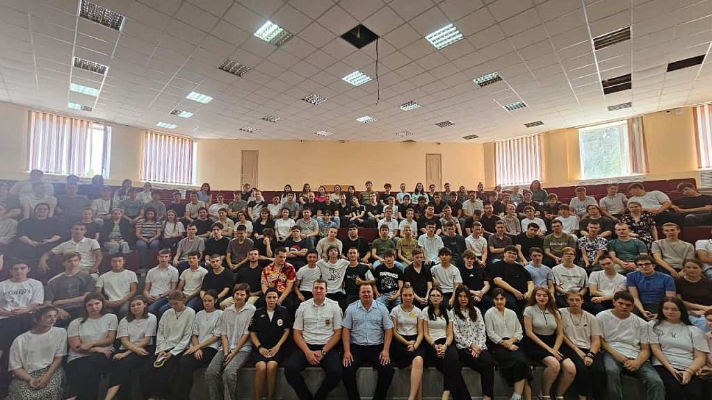 В преддверие летних каникул в колледже прошла встреча студентов 1-2 курсов с представителями правоохранительных органов на тему: "Безопасное лето! ", с инспектором ОДН ОУУП и ПНД ОМВД " Будённовский" старшим лейтенантом Ханагаевой Ж. А., госинспектором ГИБДД старшим лейтенантом полиции Бибиковым С. А., старшим оперуполномоченным ОКОН ОМВД России майором полиции Мартыновым А. В.