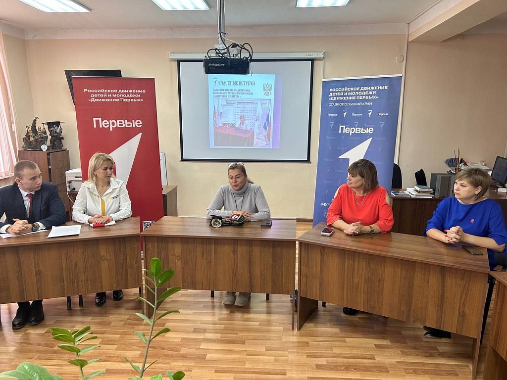 Сегодня в колледже прошла классная встреча с координатором президентского фонда "Защитники Отечества" Эльвирой Владимировной Пацкевич. На встрече также присутствовали директор колледжа Бабич М. В., муниципальный координатор Движения Первых Салий Е. А. и советник директора по воспитанию Руднева Е. С.