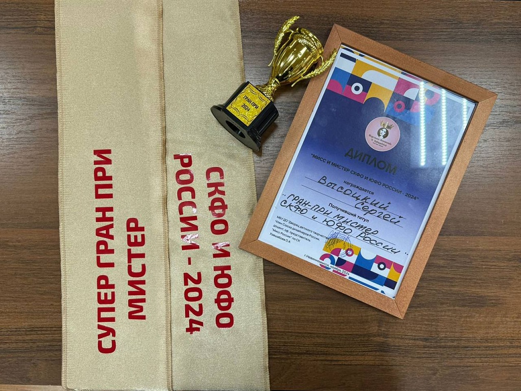 Поздравляем Высоцкого Сергея, студента 222 группы, получившего титул «ГРАН-ПРИ МИСТЕР И СКФО И ЮФО РОССИИ». Этот престижный конкурс стал значимым событием для всех участников и зрителей, проходя в городе Невинномысск, который в этом году стал культурной ареной для талантливых молодых людей.